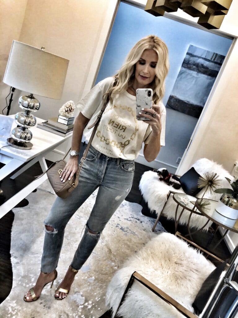 This graphic tee is by Anine Bing who is one of the coolest designers around if you ask me! Her graphic tees sell out in a HOT second so grab this under $100 tee ASAP if you love it as much as I do! It runs true to size, I’m wearing an XS.