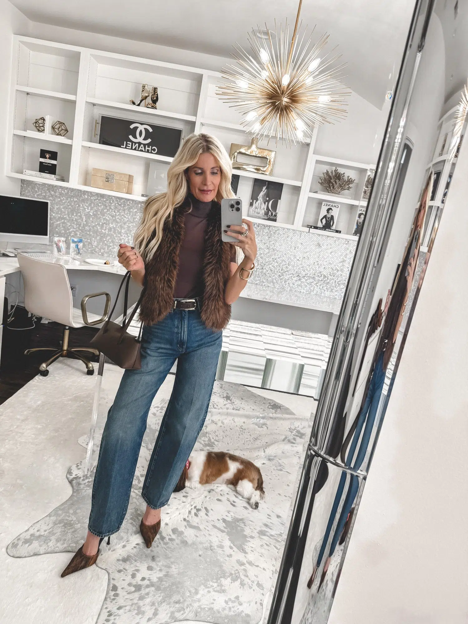 Last but not least the puddled jean trend is back and making a bold statement among 2026 denim trends. This dramatic, floor-skimming silhouette feels fashion-forward when styled with pointed-toe heels, bringing that runway-chic energy to everyday outfits. This Silverlake pair features a sculpting ultra-high waist and a soft drape that gives the perfect puddle effect without looking sloppy. Paired with a fitted chocolate top to balance the volume and keep the look sleek. Wearing size 24 and they’re slightly long, which is exactly right for this trend.