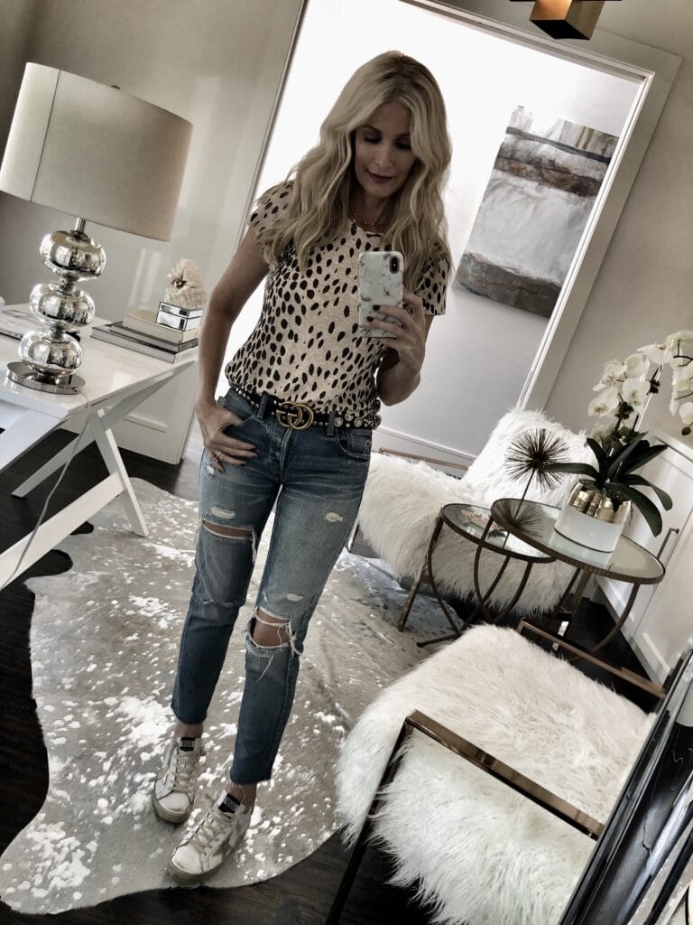 I wore this look on the weekend to run errands and a to a casual dinner out with my husband. My leopard tee is sold out, however, I have this one too and love it and wear a ton!