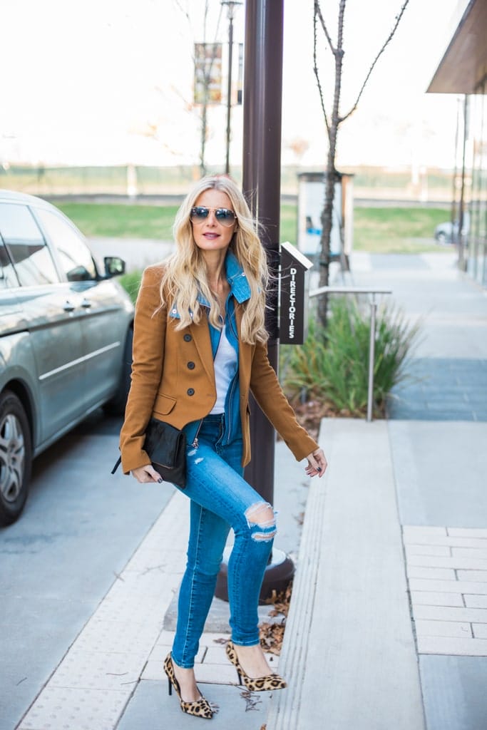 VERONICA BEARD BLAZER ON MAJOR SALE (WEARING A SIZE 0) ALSO LOVE THIS ONE // AG RIPPED JEANS // LEOPARD PUMPS // CLARE V BLACK CLUTCH 30% OFF // BLUE RAY-BANS // GOLD PENDANT NECKLACE // TOM FORD LIPSTICK IN SO VEIN // GOLD BANGLE BRACELET